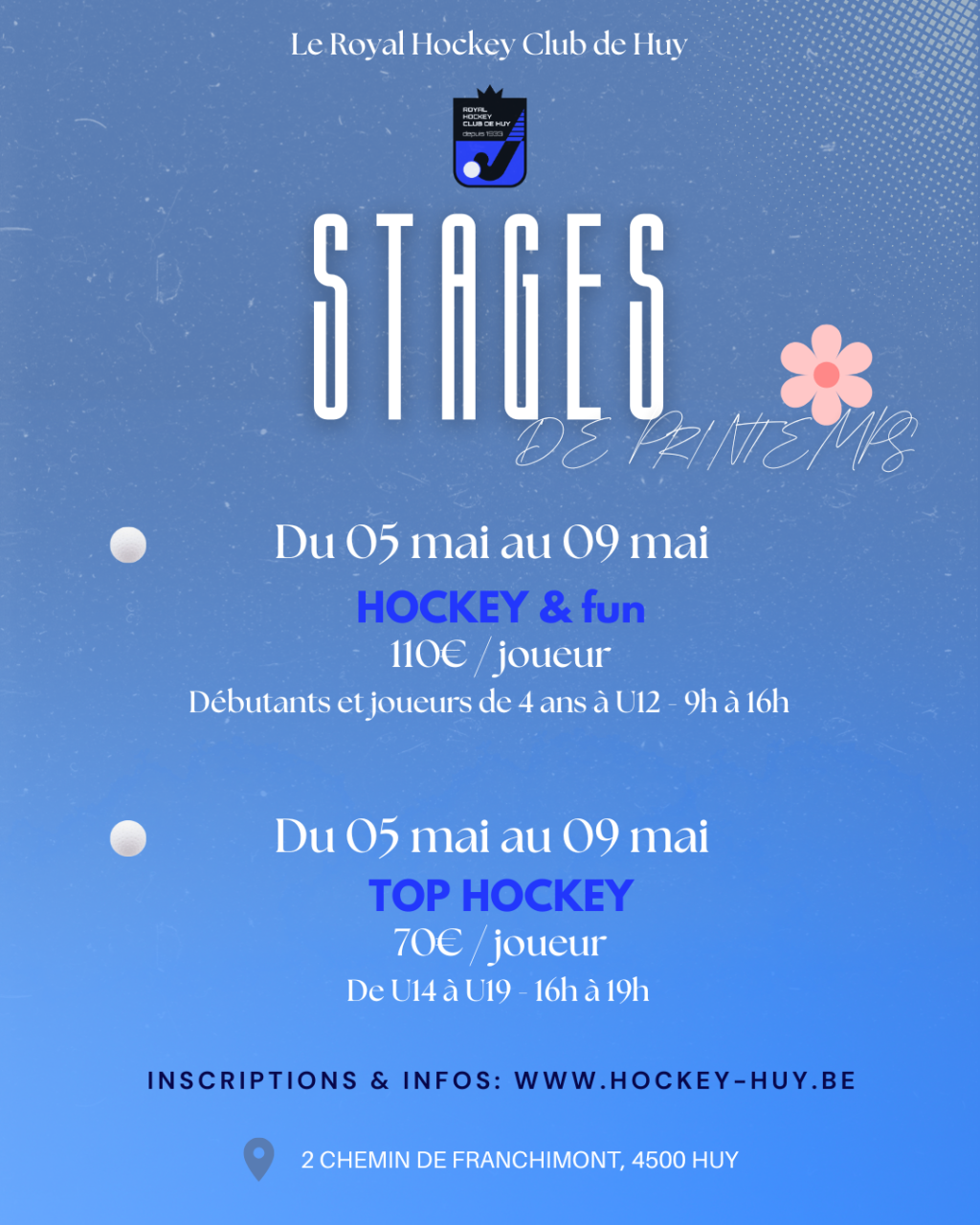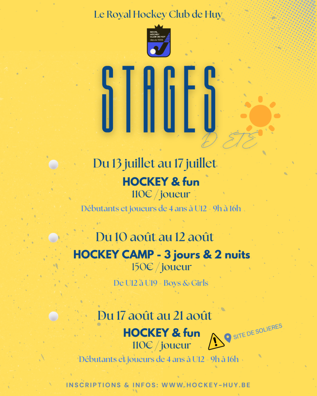 N'oublie pas de t'inscrire en envoyant un mail à jeunes@hockey-huy.be en mentionnant bien à quelle séance d'initiation tu participeras. Après 3 séances d'initiation gratuites, si le hockey te plaît, nous serons ravis de t'accueillir parmi nos hockeyeurs/hockeyeuses.