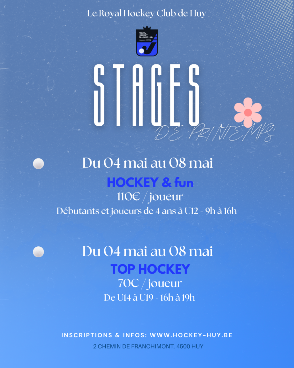 N'oublie pas de t'inscrire en envoyant un mail à jeunes@hockey-huy.be en mentionnant bien à quelle séance d'initiation tu participeras. Après 3 séances d'initiation gratuites, si le hockey te plaît, nous serons ravis de t'accueillir parmi nos hockeyeurs/hockeyeuses.